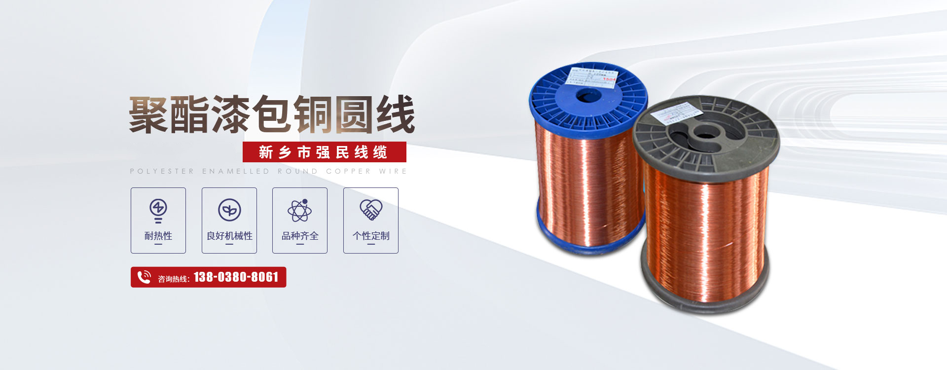 新鄉市強民線纜有限公司主要銷售各種規格高性能銅漆包線、鋁漆包線、紙包線和玻璃絲包線,年銷售能力3萬噸?! 」炯夹g力量雄厚,設備精良,所銷售的鋁漆包線與玻璃絲包線等產品性價比高,采用國內催化燃燒環保節能型漆包機、臺灣技術的雙變頻調速拉絲機等全套銷售漆包線設備和采用IEC標準對漆包線進行檢測的全套測試儀器,能滿足各類漆包線產品銷售需要。嚴格的質量控制體系,科學的產品檢測手段,使產品的質量得到更充分的保證,在同行業中享有很高的聲譽?! 」臼冀K把產品質量放在重要地位,制定了高于國際行業標準的公司內部質量執行標準,在過程中我們經歷了抓電阻、抓漆粒、抓耐壓、抓回彈、抓排線,在每一次活動中都得到了明顯的預期效果,銷售工藝不斷的完善,檢測力度的大幅度提高,保證了漆包線產品過硬的質量。企業通過了GB/T19001-2008-ISO9001:2008標準認證和ISO14001:2004環境管理體系認證。漆包線,不僅暢銷全國,還不遠萬里出口到非洲剛果等地。公司以“互惠互利、誠信發展”的服務宗旨,配以完善的售前售后服務,全力為用戶提供各種漆包線的制造和定制,贏得了合作企業的廣泛好評。  我公司本著**質量,不斷改進管理,滿足社會需求,保證客戶滿意的方針,開拓出一條規模化發展,**經營的新企業之路,熱忱歡迎海內外各界友人惠顧。
